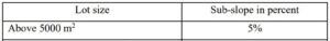 The maximum permitted height, measured from the pavement level to the middle of the lot frontage, is 14m for all sectors. These heights allow for under-slopes of 2.80m in height and a maximum percentage of the covered area of: